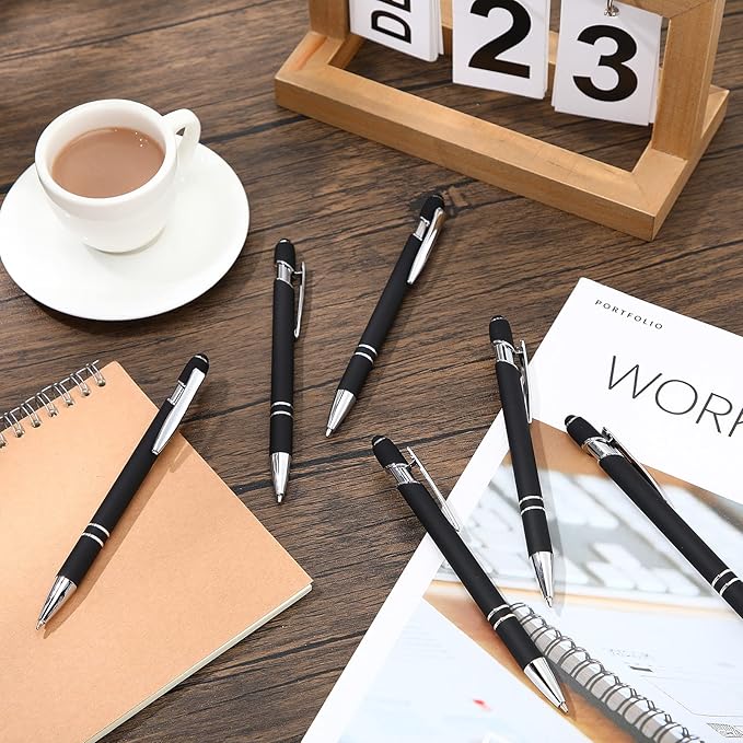 - Package content: there are 12 pieces of ballpoint pens with stylus tips in black, metal pens with black ink medium ballpoint; This metal ballpoint pen set will be a practical gift and can also be applied in schools, offices, parties, meetings, trade shows, corporate events, etc.