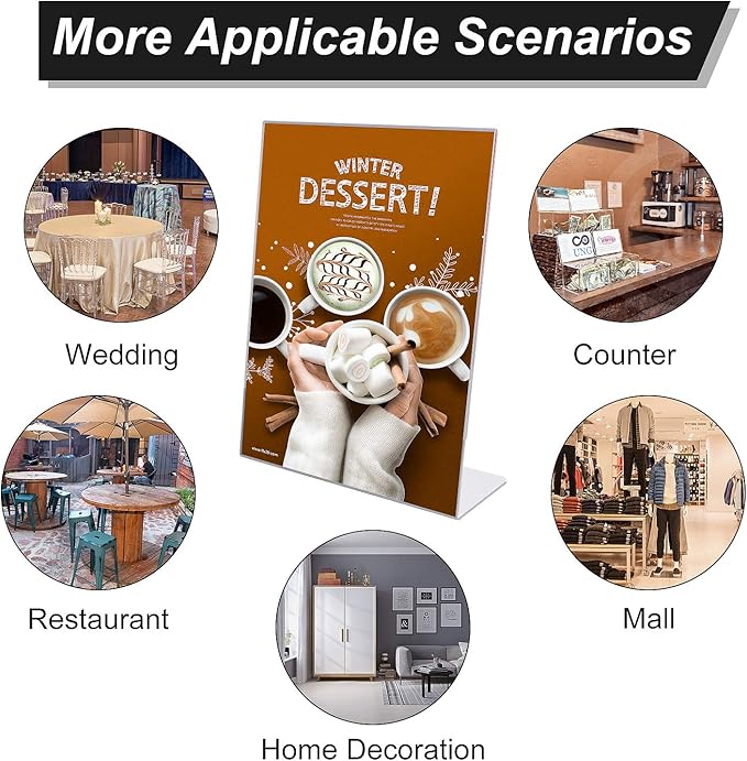 - Crystal Clear: Premium 8.5 x 11 acrylic plastic table sign holder stand is perfect for displaying in an office, hotel, library, school, church, restaurant, trade show, hospital or any other locations for your signs or advertisements!