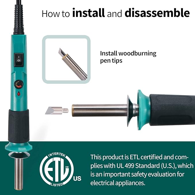 - Complete Pyrography Kit - We packed this kit with the basic items you’ll need to get started in pyrography, you can enjoy the fun of wood burning with a safe, adjustable, and lightweight wood burning tool. Caution: Tighten the pyrography tip, and remove the silicone cover before use