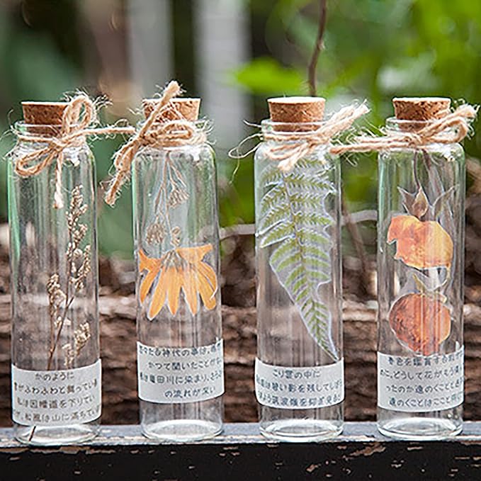 MAXLEAF Transparent Waterproof Stickers Set - 48PCS Vintage Plants Flowers Collection Big Size Waterproof Stickers for Decoration Planners Scrapbook Laptops (Dried Flowers)