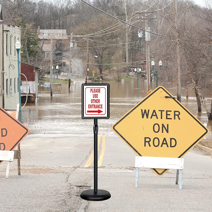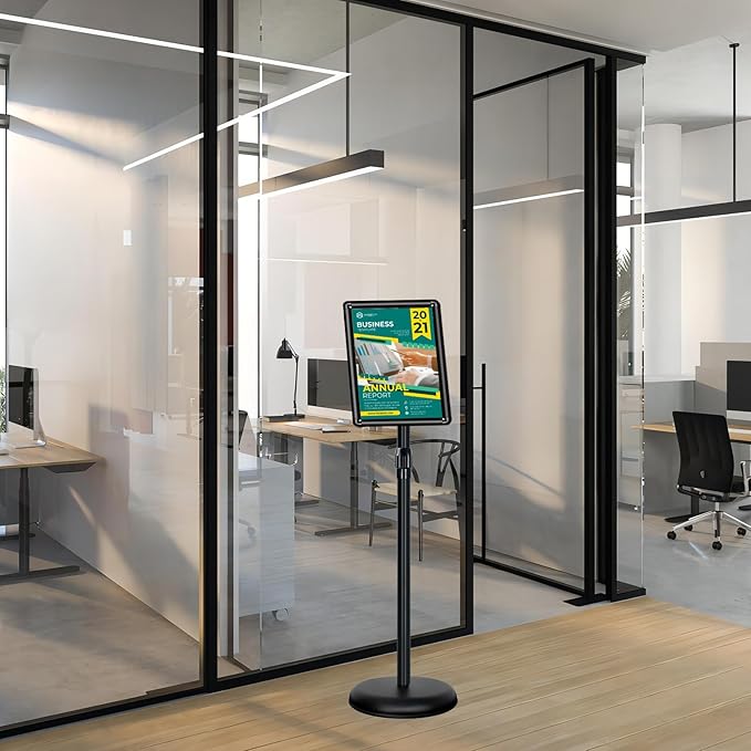- ✅ Sturdy & Stable: The material of the poster frame is aluminum and the material of the stand pole is stainless steel. Besides, you can add water and sand into the rubber base to increase stability.