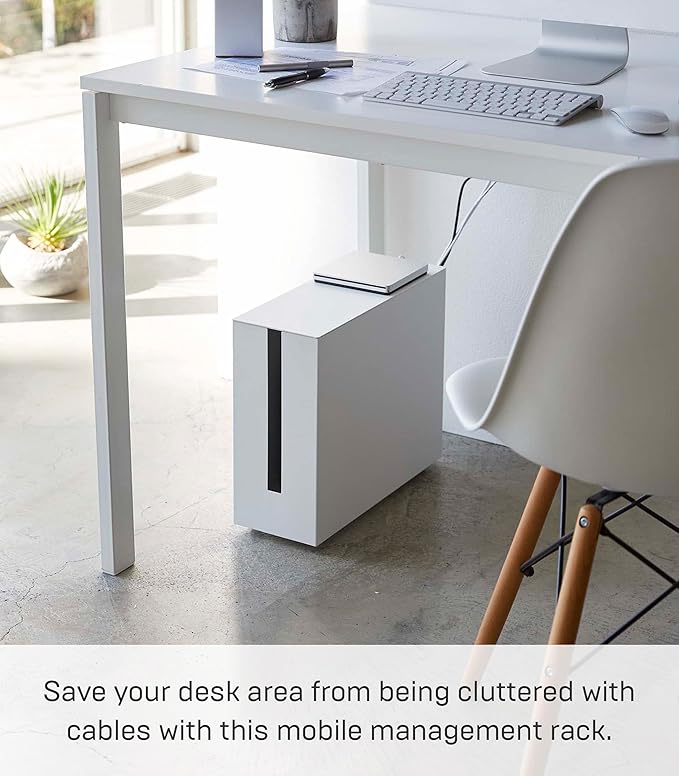 Yamazaki Home Rolling Cable Management Cord Power Strip/Surge Protector Storage Organizer for office or Bedroom Steel One Size White