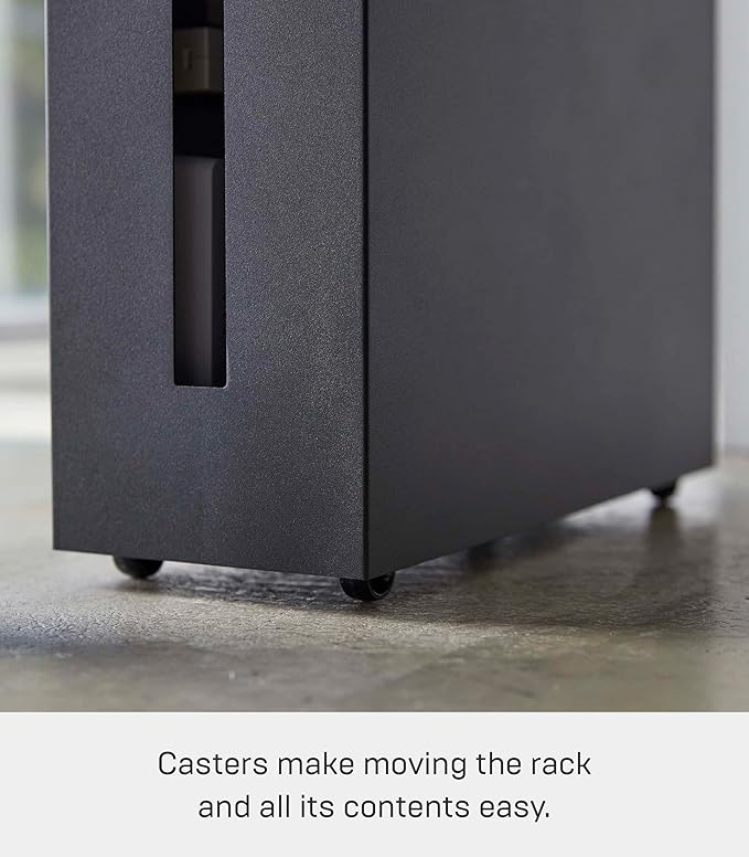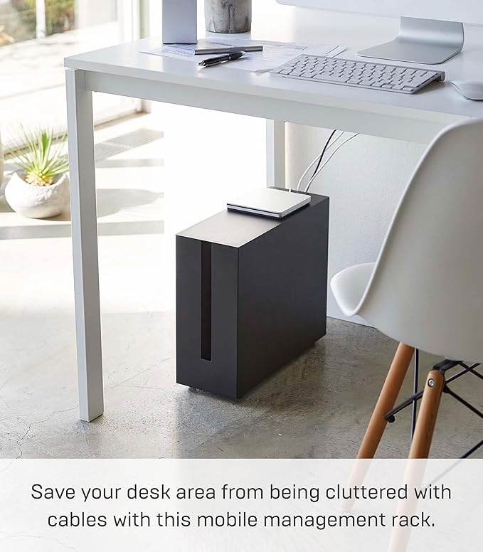 Yamazaki Home Rolling Cable Management Cord Power Strip/Surge Protector Storage Organizer for office or Bedroom Steel One Size Black