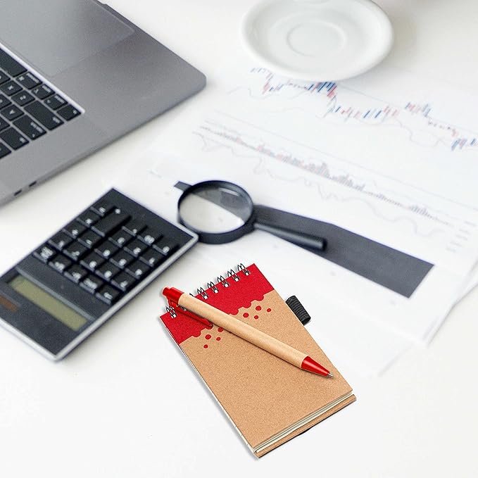 DISCOUNT PROMOS 10 Recyclable Spiral Small Notebooks Pack - 60 Lined Pages - Red