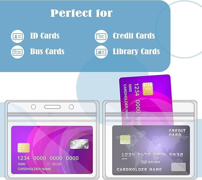 - Waterproof card holder: adopting horizontal design, each clear badge holder can accommodate up to 5 ID cards the size of a credit card, it can keep your name card, ID card or traffic pass safe and dry