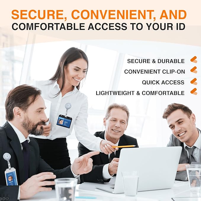 - 【TOP QUALITY BADGE REEL】: Our retractable badge clip is made of high-quality ABS shell and high-strength nylon fish thread of badge clip with 30-inch extension makes retractable badge reel easier to use your ID card. The spring at the joint of id retractable badge holder can reduce the tension and effectively prevents the cord from breaking. All above advantages make it durable