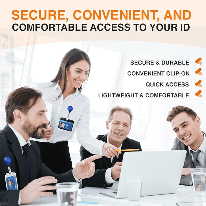 - 【NO TWIST BADGE HOLDER RETRACTABLE】: Id badge holders retractable have a unique no twist structure, retractable clip ensures that your ID card will not be turned over and will always be on the side you need to show. Retractable badge holder with a belt clip, which can be hung not only on your chest, but also on a backpack, belt, or pocket
