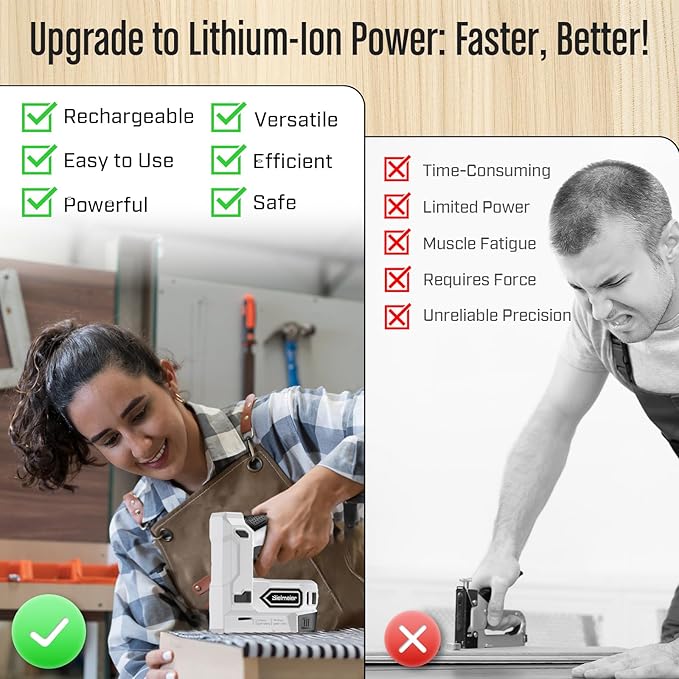 - 【USB Type-C Charging Port】This electric stapler is entirely 1,500mAh lithium-ion battery-powered. Only 2 hours are needed to fully charge this electric nail gun with the USB Type-C cable. The charging LED indicator lets you know when it is fully charged. We provide a one-year warranty. Contact us if you have any questions, and we love to help!