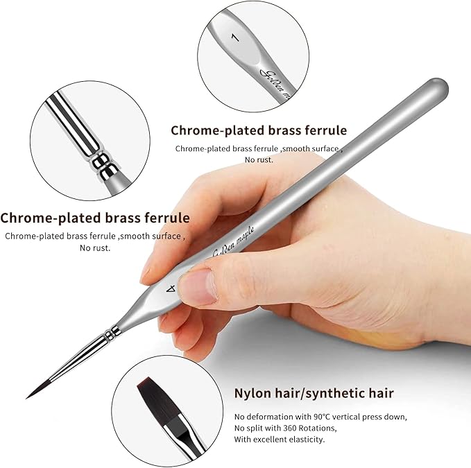 - ALUMINUM FERRULE: Small paint brush set made from high-grade aluminum, tremendously durable under corrosive condition. With delicate design, the miniature painting brushes handle is coated with UV protection, easier to control for painting long hours.