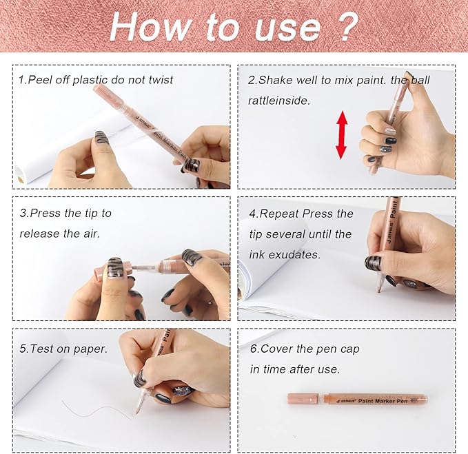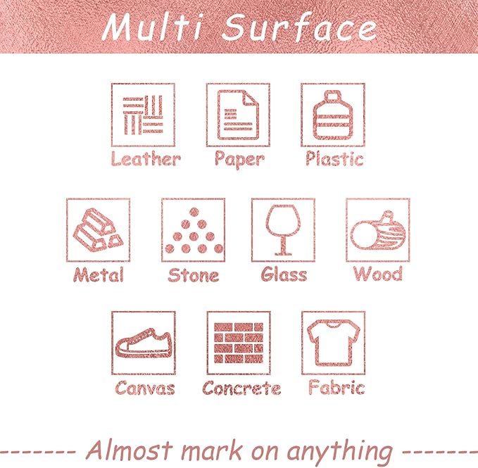 Acrylic Paint Pens Gold,Silver,Rose Gold,Paint Markers for Rocks Painting, Wood, Fabric, Glass,Ceramic,Canvas. Scrapbooking,Card Making,DIY Craft Supplies Metallic Acrylic Marker Set (Rose gold)