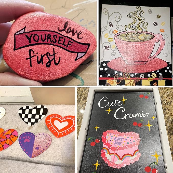 - JEFFNIUB Metallic Acrylic Paint Markers for Rocks Painting,Fabric,Wood,Glass,Ceramic,Canvas,Scrapbooking,Card Making Supplies