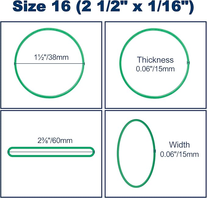 - Size16: 2 1/2" x 1/16". Each band measures 2.37 inches (60mm) in length, 0.06 inch (15mm) in width, and 0.06 inch (15mm) in thickness