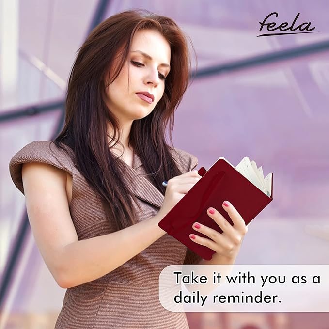 feela 24 Pack Journal Notebook for Work, Business Notebook Bulk Hardcover Lined Writing Journal with Pen Holder for Men Women Note Taking, with 24 Black Pens, 120 GSM, 5.1”x8.3”, A5, Wine