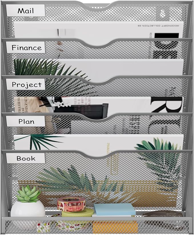- Mesh File Organizer with Classify Label: Powder-coated metal mesh file organizer, anti-oxidation and anti-rust, providing a long-lasting solution for your office and home organization needs. Come with classify labels to help you keep your documents neatly organized.