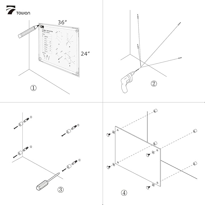TOWON Tempered Glass Calendar Dry Erase Board for Wall, 3' x 2' Magnetic Whiteboard Calendar Planner for Office, Home, School Supplies, White, 36 x 24 Inches
