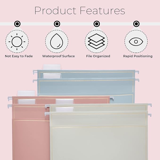 - Gold Foil Design - Unlike traditional file folder, our rose gold hanging file folder can match the gold desk organizer, and bring fashion and a modern atmosphere to your desk, create a more luxurious and elegant space
