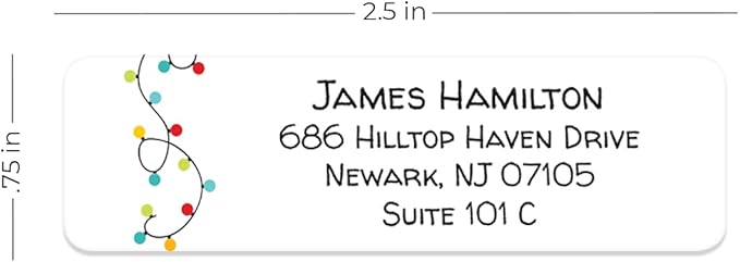Christmas String Lights Rolled Address Label/Roll of 250 Holiday Personalized Address Labels/Designer Return Address Stickers in Elegant Plastic Dispenser