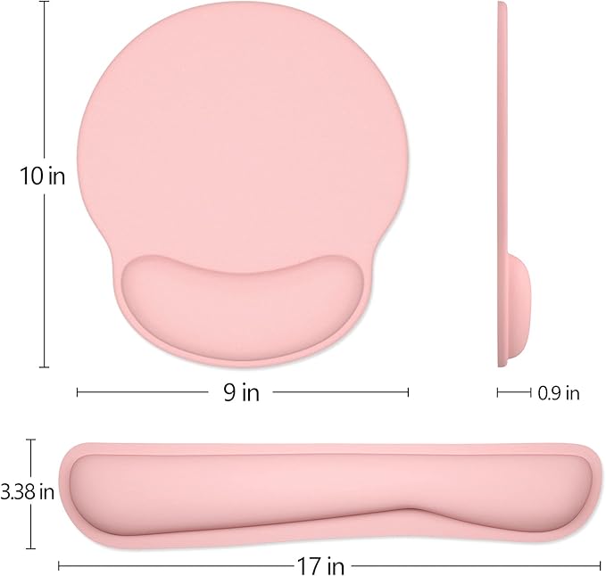 - Optimal Size: 17*3.38*0.9 inch keyboard wrist pad offers more support to your wrist, 10*9*0.9 inch large mouse pad allows your mouse to move freely. Perfect size fits most keyboards, laptops and mice
