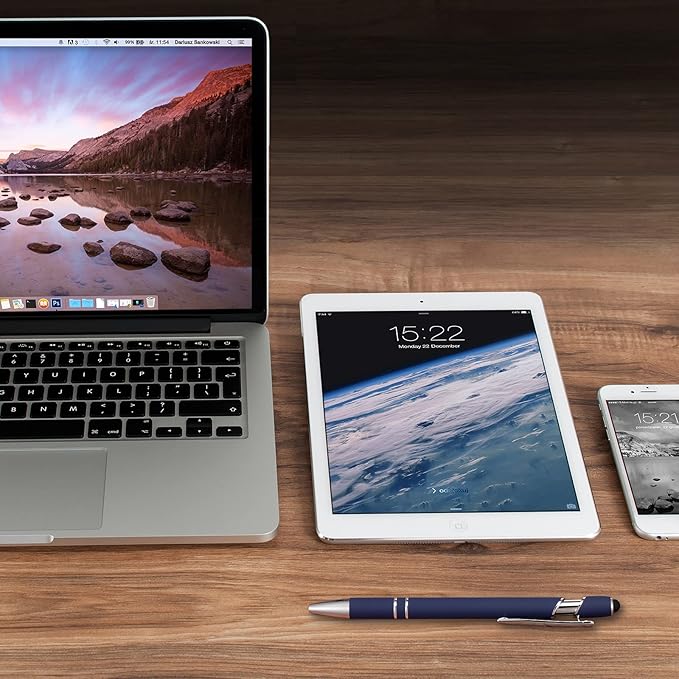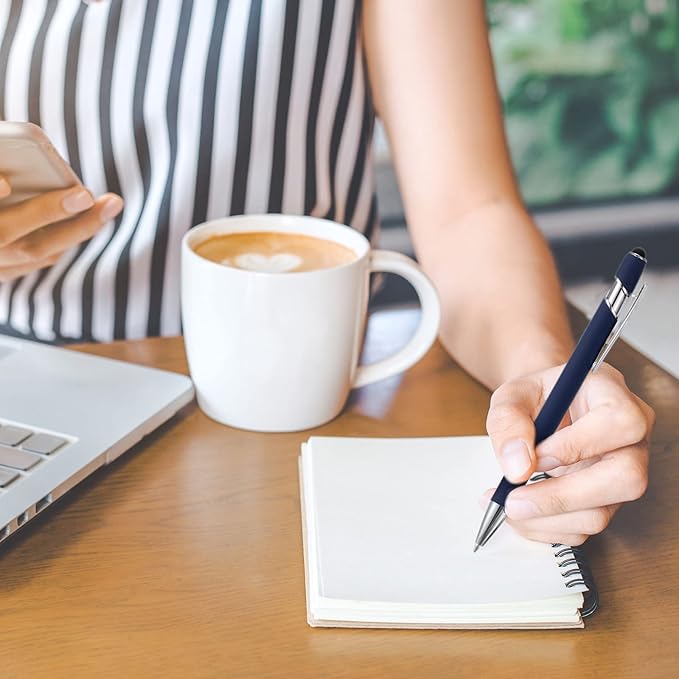 8 Pieces Ballpoint Pen with Stylus Tip Black Ink 2 in 1 Stylus Metal 1.0 mm Medium Point Smooth Pen Rainbow Colorful Rubberized Ballpoint for Touch Screen Tablet(Dark Blue)