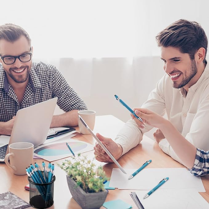 Tenare 12 Pieces 2 in 1 Stylus Metal Ballpoint Pen with Stylus Tip, 1.0 mm Black Ink Ballpoint Pen for Touch Screens(Blue-green)