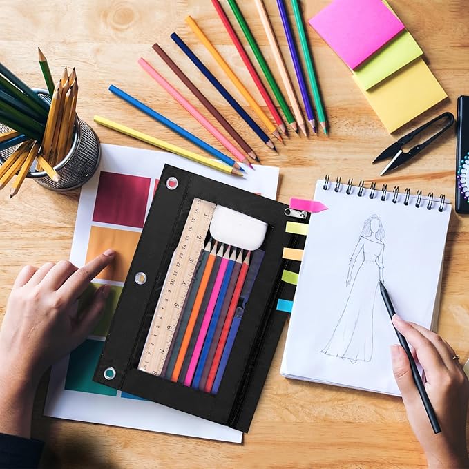 - 【3-RING】The intimate 3-ring buttonhole design can be easily placed in a standard 3-ring binder pocketes. Easily pack all your odds and ends and collect them together.