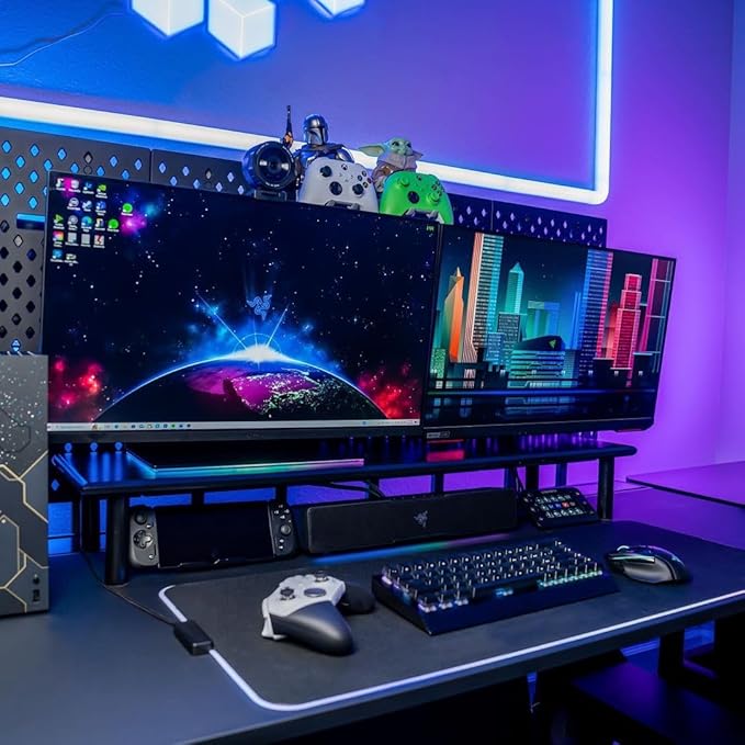 - Extra Long Size: Measuring 39.37 x 10.62 x 5.5 inches with legs, this stand accommodates up to a 75-inch monitor or two 27-inch screens simultaneously