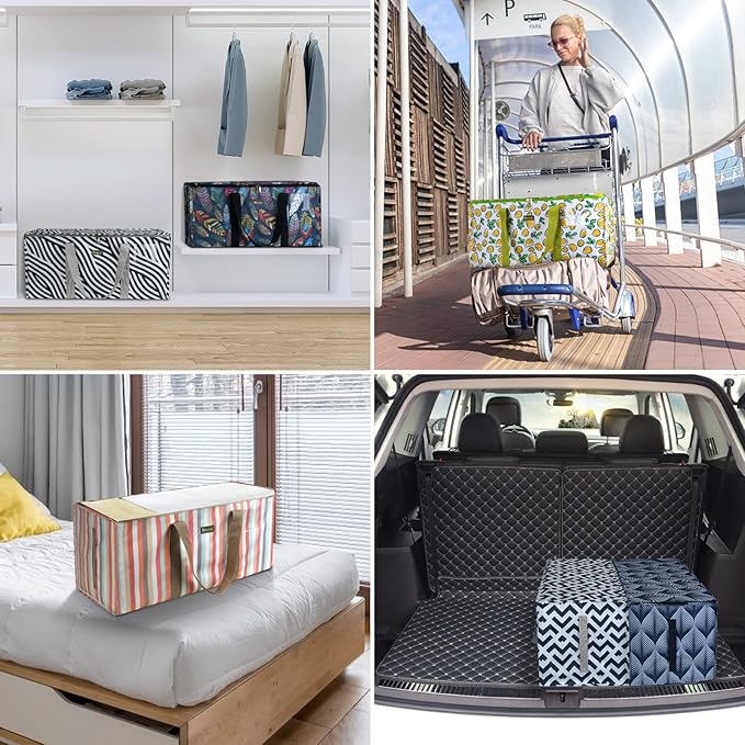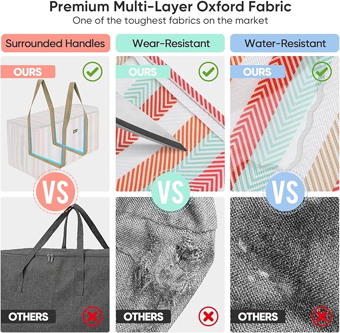 BALEINE Extra Large Storage Tote with Zippers & Carrying Handles, Heavy-Duty Oxford Fabric Moving Bags for Laundry, Space Saving, Storage, 2-Pack, Color Stripe