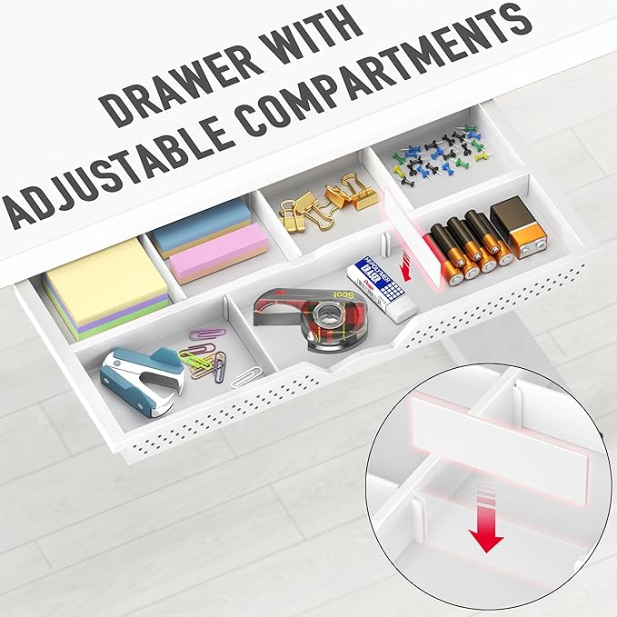 - Integrated Cable Management , Hooks and Drawer: Includes a built-in cable tray to neatly organize cords and reduce desktop clutter, maintaining a clean and professional workspace.