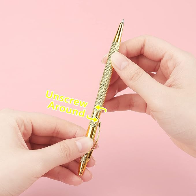 3 Pack Slim Metallic Retractable Ballpoint Pens Black Ink, Nice Gift for Business Office Students Teachers Wedding Christmas (Gold)