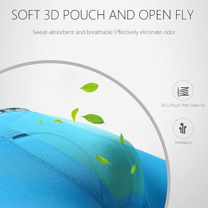 BAMBOO COOL Men's Ultra Breathable Underwear,No Riding Up Boxer Briefs with ComfortFlexible Waistband,Multipack