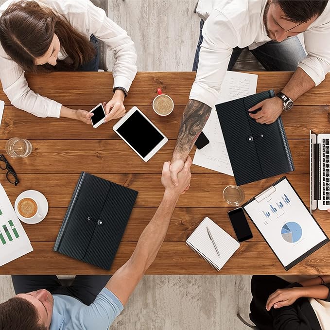 - SECURE AND UNIQUE DESIGN: The document organizer features flap with elastic cord closure, keep all your documents inside and not easy to fall. Much safer to carry this expandable file folder from place to place. Provides two back card slots for business cards, project titles etc