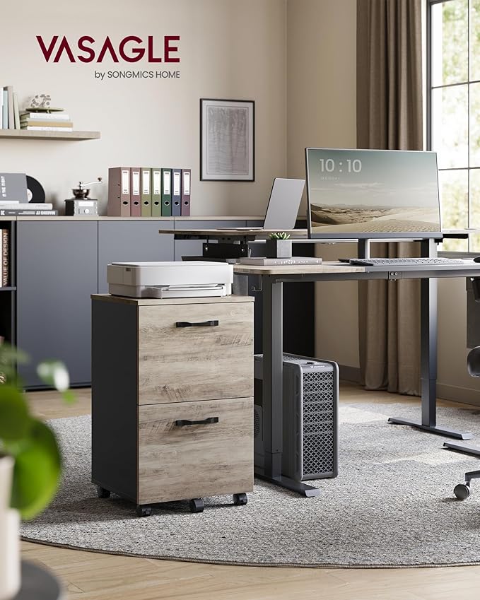 VASAGLE 2-Drawer File Cabinet, Small Rolling Filing Cabinet for Home Office, Printer Stand, for A4, Letter-Size Documents, 15.7 x 16.5 x 27.6 Inches, Heather Greige and Ink Black UOFC040B02