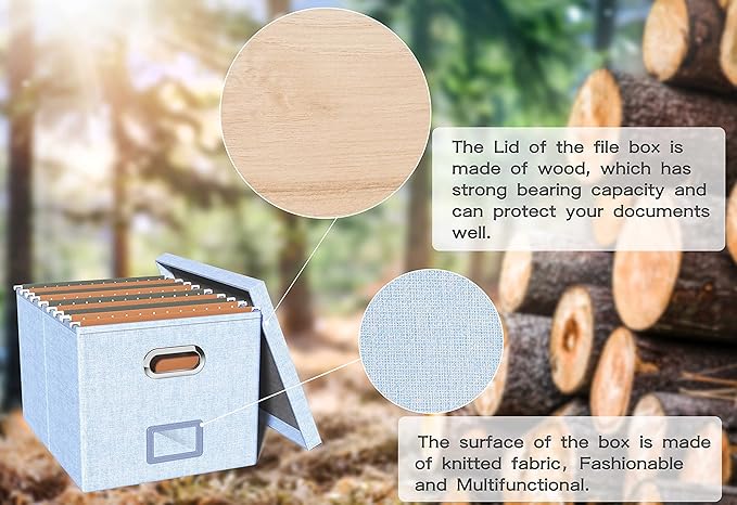- Upgraded File Storage Box: Material and fabric upgrade and reinforcement, More durable, This file storage organizer is made of high quality MDF board, better support and bearing capacity. The lid can fit easily on the box after hanging folders.