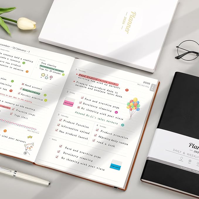 - PROFESSIONAL DESIGN: 2026-2027 Planner to take charge of your schedule with timeless elegance. Crafted with a premium simulated leather soft cover, tight sewn binding, and 100gsm thick paper, it ensures durability for prolonged use. Additionally, it features an inner pocket to conveniently store miscellay, keeping all essentials within reach