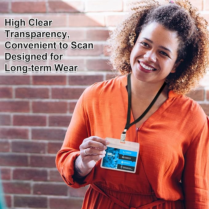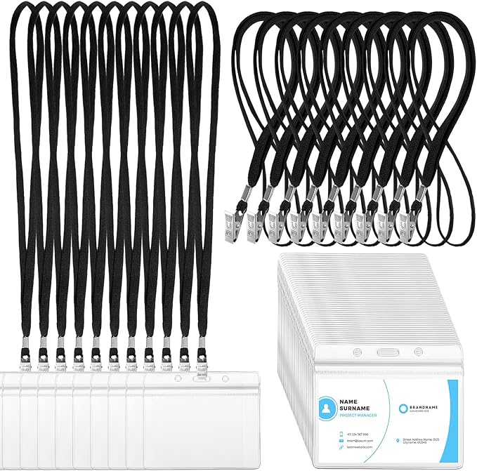 - Package Contents: 100 pieces of clear ID card holders with 100 pieces of flat neck lanyards that are available in bright color, which are suitable for most bag tags and ID cards, the enough quantity are enough for business travel office supplies