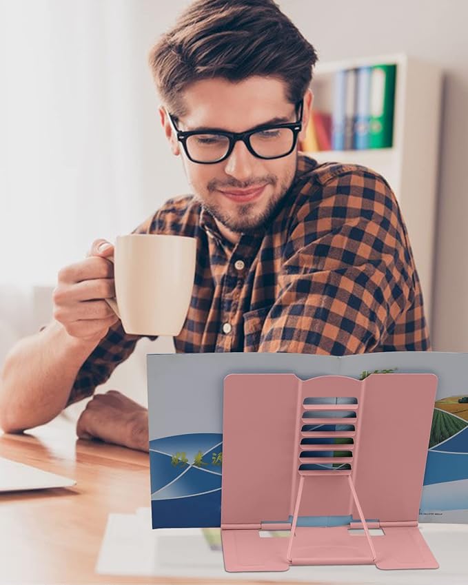 - Portable: Book holder can fold quickly, saves space, and can be easily put into a school bag or drawer for easy storage and carrying. It can be used in the living room, kitchen, classroom, office, library, etc.