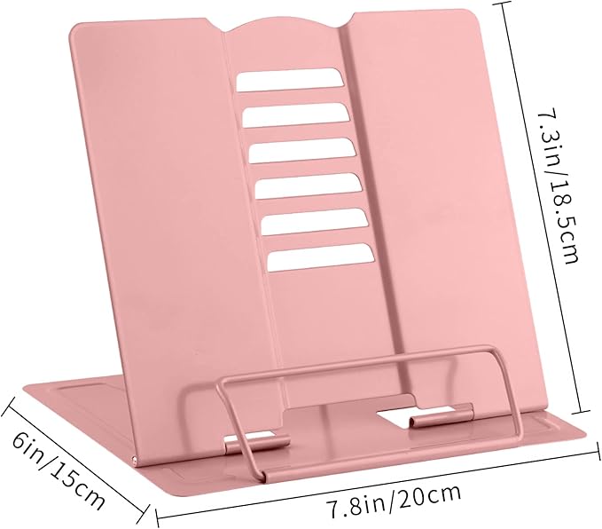 MSDADA Desk Book Stand Holder for Reading, Adjustable Cookbook Stand,Metal Reading Stand for Textbooks Recipes Music Books Tablet, Gifts for Kids Girls 8-12 (Morandi Pink)