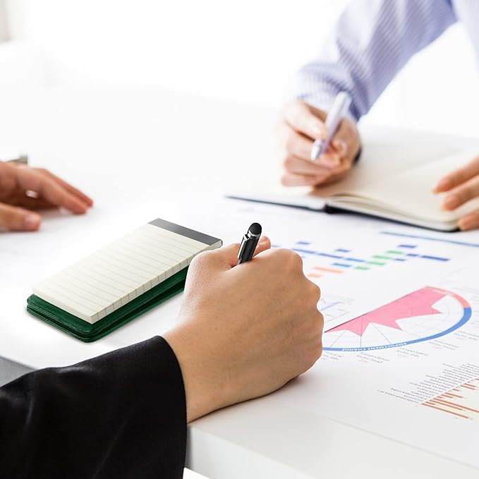 Outus 10 Pcs Pocket Notebook with Pen Set Included Mini Pocket Notepad Holder with 50 Lined Sheets, Metal Pen, 8 Pcs 3 x 5 Inch Memo Book Refills, 30 Lined Paper Per Note Pad (Green)