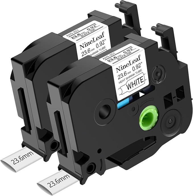 - NineLeaf 2 pack compatible for brother p-touch HSe251 HSe-251 HS-251 HS251 AHS-251 heat shrink labels.Size: 23.6 mm (0.92 inch) x 1.5 m(4.92ft), Color: Black on White. The size indication for this heat-shrink tube label is the width of the flattened tube as a label in a label printer.