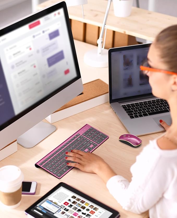 - Wide Compatibility --Compatible with Windows 2000 / ME / XP / Vista / 7 / 8 / 10. Work well with Macbook, desktops, Chrome-book, PC, Laptop, Computer Smart TV and more. Both keyboard and mouse give a world of silence and a morden desktop; great for conference, board presentation, library, coffee shop, night work, travel, etc.