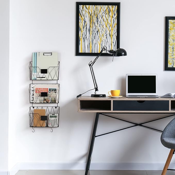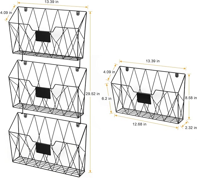 - 【Mail Organizer Wall Mount】The wall file holder has 3 separate wall baskets, which are great for sorting files, documents, magazines, mail, notebooks, books and so much more. And you also use a wall mail organizer for bathroom and kitchen organization.