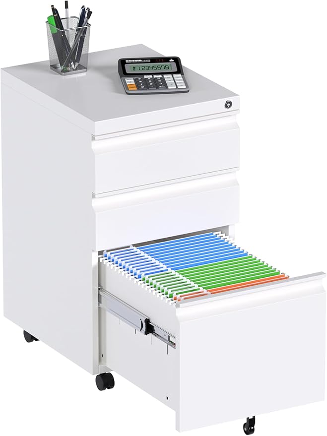 - Effortless Mobility with Advanced Wheels: Equipped with five 360-degree rotating wheels (including 2 lockable front wheels and a center wheel designed to prevent anti-tipping), this under desk file cabinet moves smoothly without producing noise, offering stability and ease of use in any workspace;