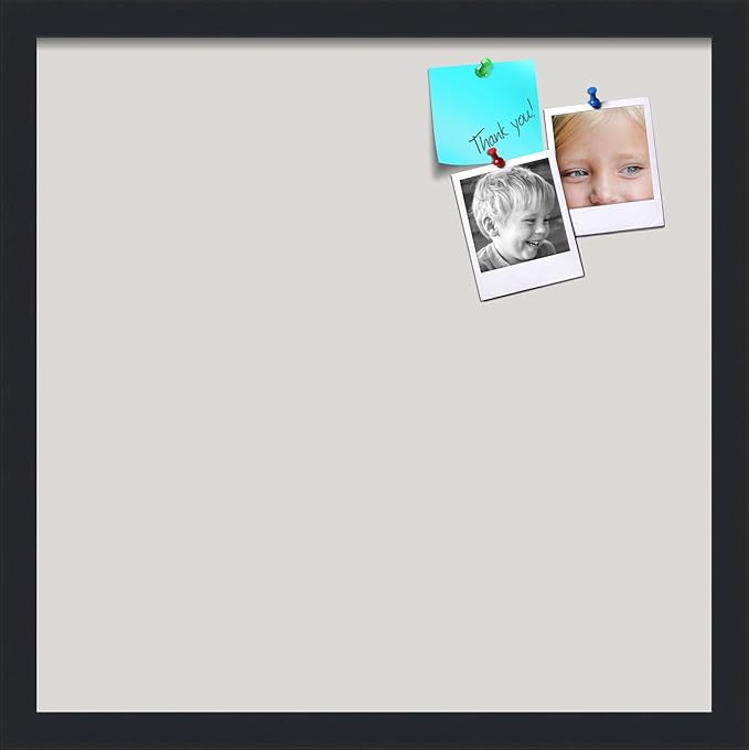 PinPix 18x18 Inch Cork Bulletin Board. This Decorative Framed Pin Board Comes with Light Stone Design and a Satin Black Frame. Ideal for Home Office Decor or Message Board (PinPix-1809)