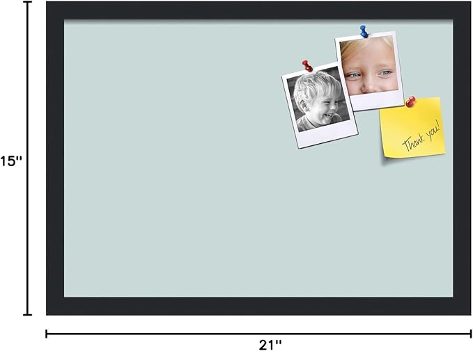 PinPix 21x15 Inch Cork Bulletin Board. This Decorative Framed Pin Board Comes with Soft Blue Design and a Satin Black Frame. Ideal for Home Office Decor or Message Board (PinPix-1814)