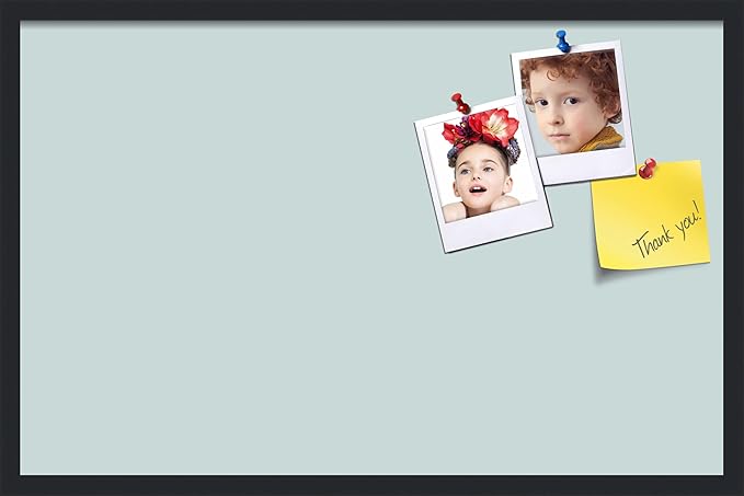 PinPix 34x22 Inch Cork Bulletin Board. This Decorative Framed Pin Board Comes with Soft Blue Design and a Satin Black Frame. Ideal for Home Office Decor or Message Board (PinPix-1814)