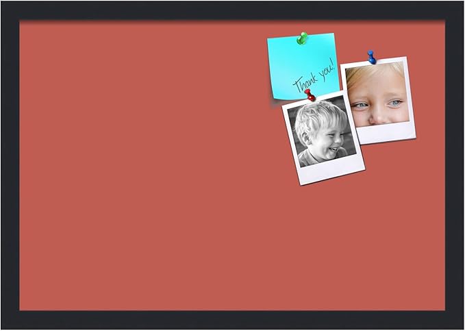 PinPix 22x15 Inch Cork Bulletin Board. This Decorative Framed Pin Board Comes with Crimson Pastel Design and a Satin Black Frame. Ideal for Home Office Decor or Message Board (PinPix-1807)