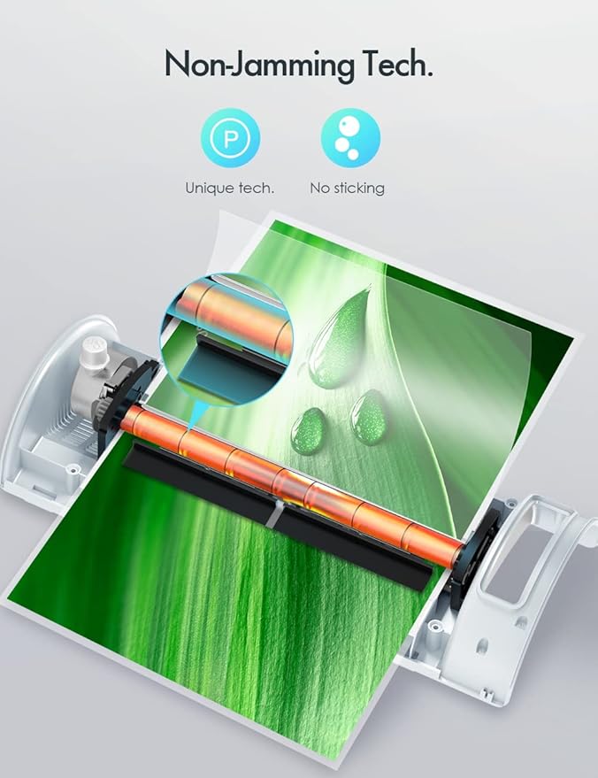 - 【1min Warm-Up】Use exclusive patented technology, with a quick 1min warm-up and fast laminating speed of 400mm/min to boost your efficiency, protect your important document. The intelligent temperature control system can keep the machine at a suitable and accurate temperature.