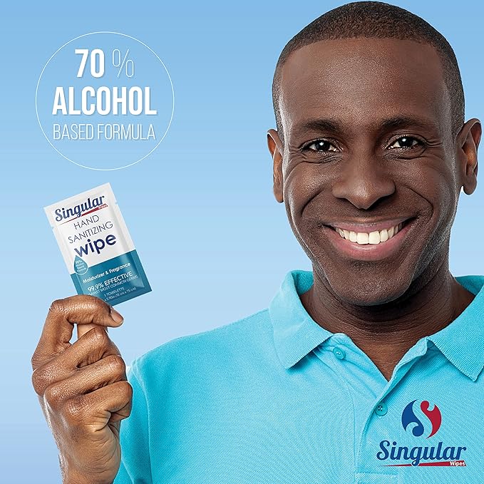 Hand Sanitizing Wipes Travel Size by Singular Wipes – 100ct Individually Wrapped | Fresh Citrus Scent, Moisturizing, 70% Alcohol Wipes | Travel, Office, School, Home | Made in USA