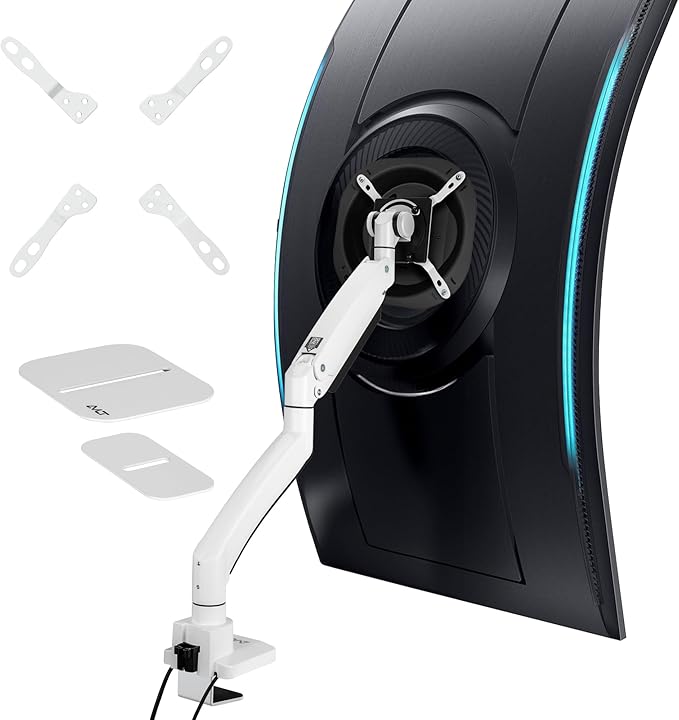 AVLT Single 17"-57" Super Ultrawide Monitor Arm for Screens Up to 59.5 lbs, Premium Aluminum Desk Stand, Adjustable Pneumatic Height, Full Motion Swivel Tilt Rotation, USB-C & USB-A Ports, White