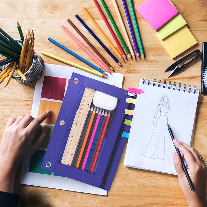 - 【3-RING】The intimate 3-ring buttonhole design can be easily placed in a standard 3-ring binder pocketes. Easily pack all your odds and ends and collect them together.